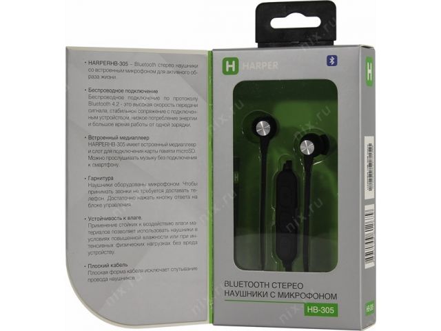 Наушники с микрофоном HARPER HB-305 Black (Bluetooth, microSD, с регулятором громкости)