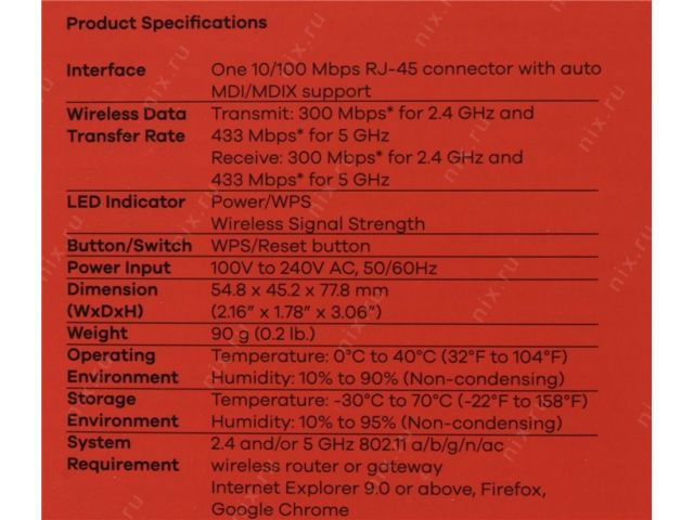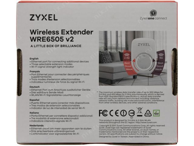 ZYXEL WRE6505 v2 Wireless Extender (1UTP 100Mbps, 802.11a/b/g/n/ac, 433Mbps)