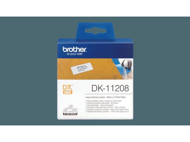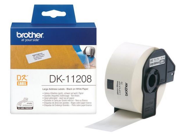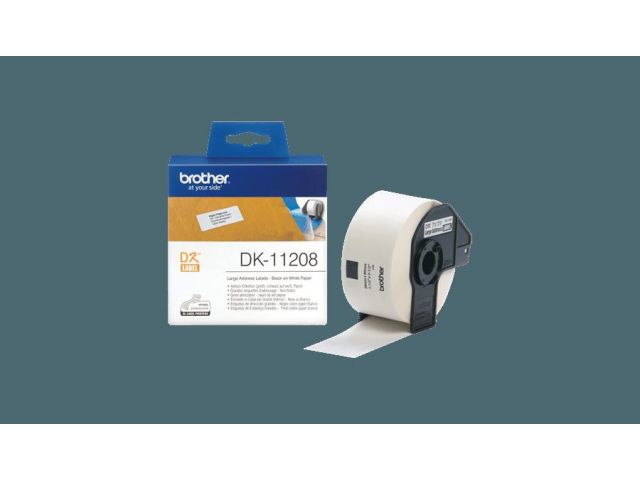 Термотрансферная лента Brother DK-11208 (38мм x 90мм, 400 этикеток, Black on White)