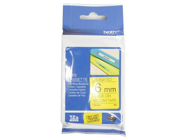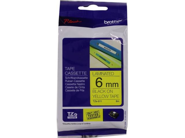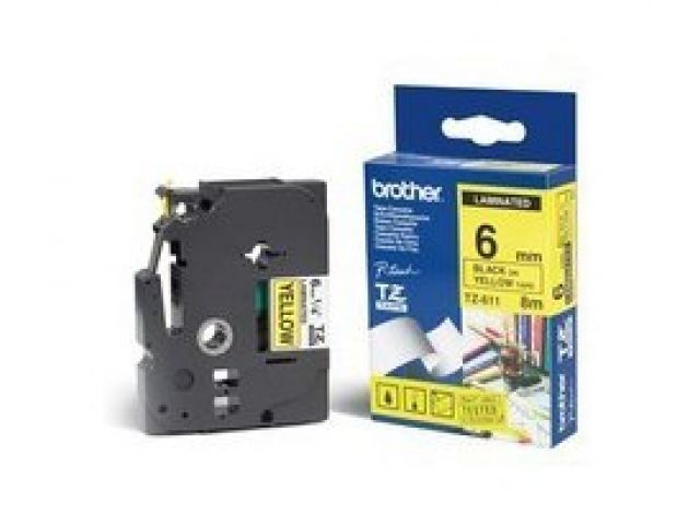 Brother TZE-611 ламинированная лента для печати этикеток (ширина 6мм, 8м, чёрный на желтом)