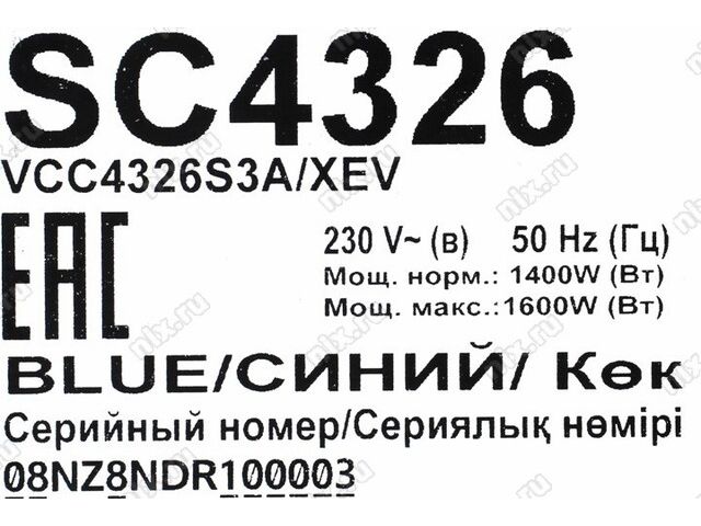 • Samsung  VCC4326S3A Пылесос (1600Вт, 1.3л)