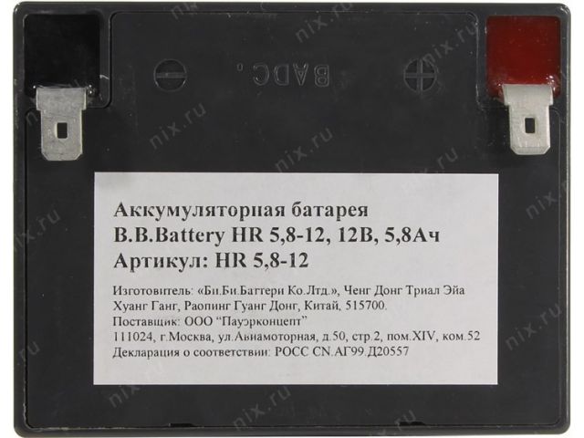 Аккумулятор B.B. Battery HR5.8-12 (12V, 5.8Ah) для UPS