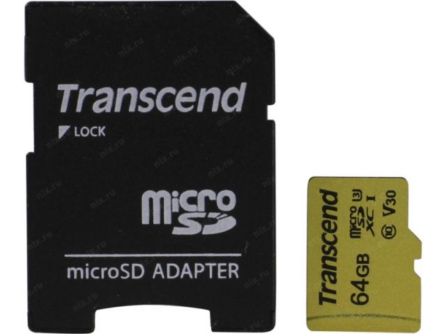 • Transcend TS64GUSD500S microSDXC Memory Card 64Gb UHS-I U3 V30 + microSD-- SD Adapter