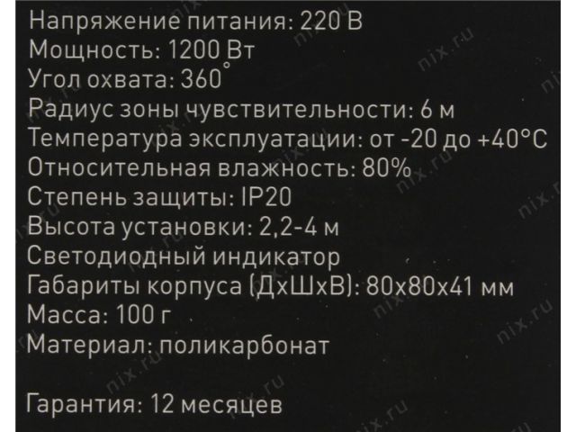 Датчик освещенности/движения настенный для автоматического управления освещениемПодключение светильника до 1200 Вт Время задержки от 10 секунд до 15 минутОсвещенность 3-2000 LUXВысота установки от 2.2 до 4 метров