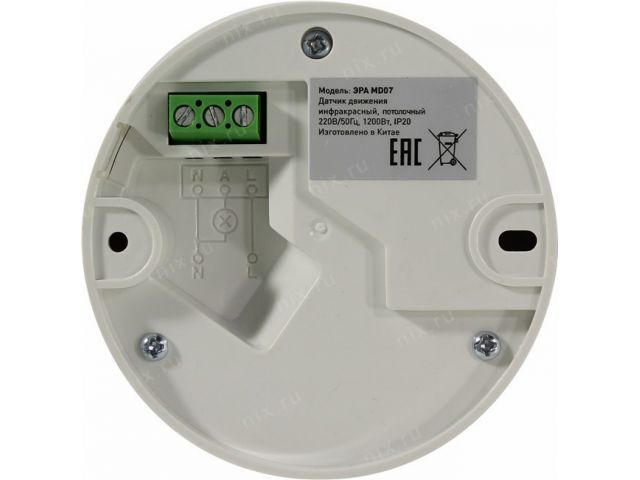 ЭРА MD07 Датчик движения инфракрасный потолочный (6м, 1200Вт, 220В)