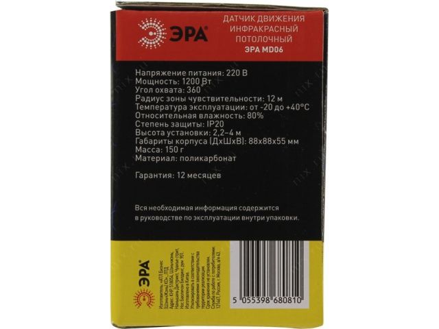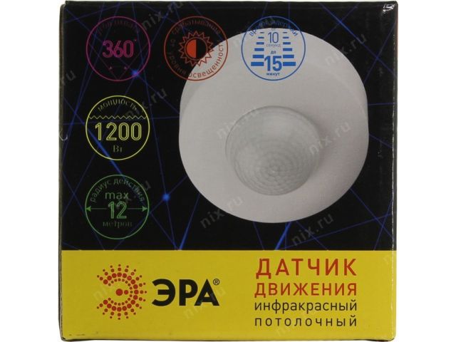 ЭРА MD06 Датчик движения инфракрасный потолочный (12м, 1200Вт, 220В)