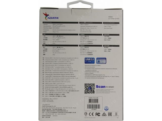 | Внешний жесткий диск 2.5 ADATA DashDrive Durable HD650 1 Тб AHD650-1TU31-CBK USB 3.1 Gen1 5 Gbps (=USB 3.0) |