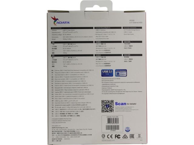 Внешний жесткий диск 2.5 ADATA HD330 1 Тб HD330 USB 3.1 Gen1 5 Gbps (=USB 3.0)