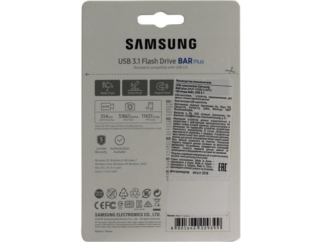 Флешка Samsung BAR PLUS MUF-128BE3/APC USB 128 ГБ
