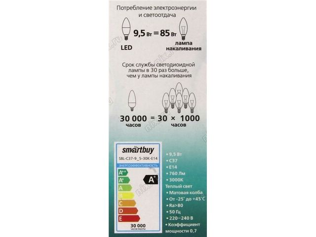 | Лампа светодиодная SmartBuy SBL-C37-9_5-30K-E14 |
