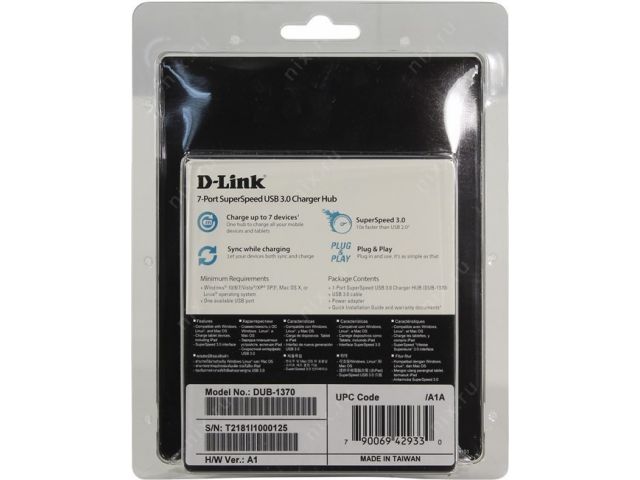 D-Link DUB-1370 ,B2A 7-port USB3.0 Hub + б.п.
