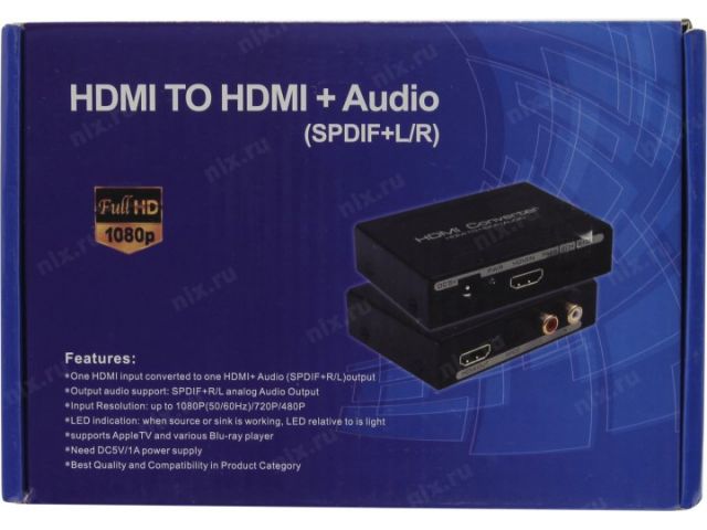 Преобразователь сигнала HDMI в HDMI + цифровой или аналоговый аудиосигнал