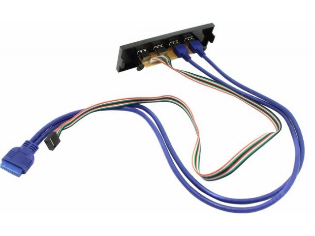 Устанавливаемая в отсек 5.25 панель с 2 портами USB 3.0 и 2 портами USB 2.0; подключается к 20-пиновому и 10-пиновому внутренним разъемам на материнской плате