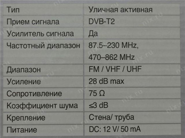 Тип оборудованияTV антенна с усилителем
