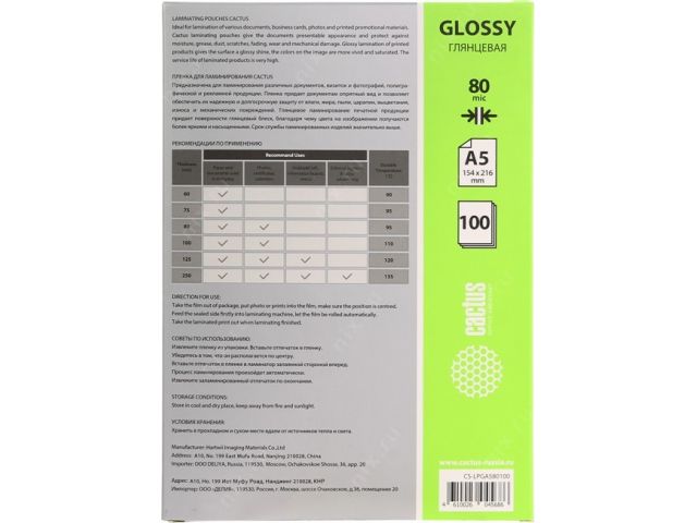 Пакет для ламинирования Cactus CS-LPGA580100