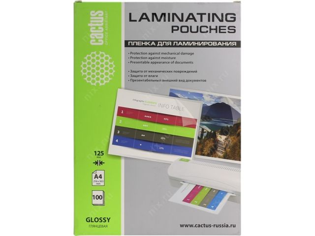 • Cactus CS-LPGA4125100 пакеты для ламинирования (A4, 125мкм, уп. 100 шт)