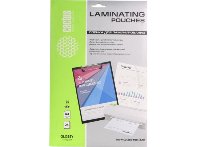 • Cactus CS-LPGA47525 пакеты для ламинирования (A4, 75мкм, уп. 25 шт)