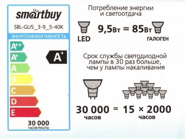 Smartbuy SBL-GU5_3-9_5-40K (GU5.3, 4000К, 9.5Вт, 220-240В)