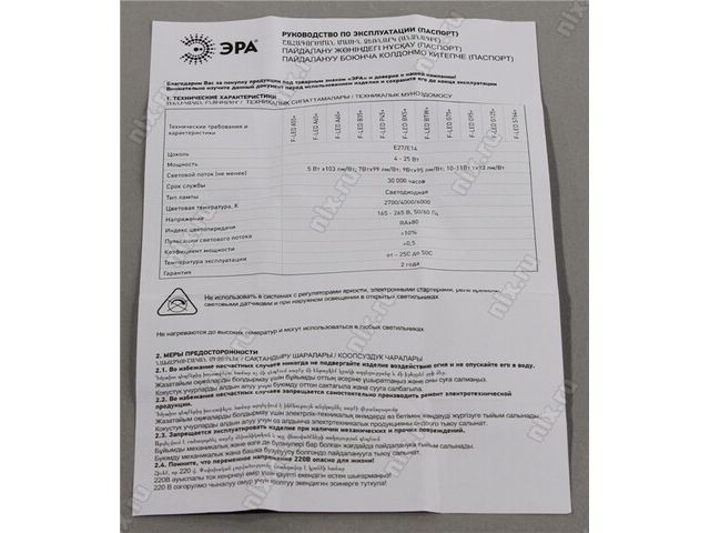 | Тип оборудования | Лампа светодиодная |