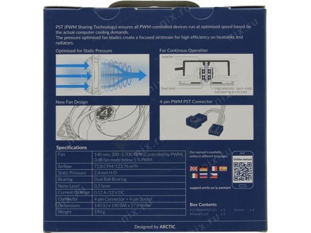 Arctic ACFAN00126A P14 PWM PST CO (4пин, 140x140x27мм, 200-1700об/мин)