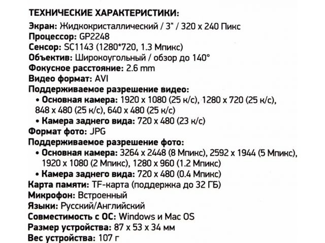 Digma FreeDrive 108 Dual Black (2xCam, 1920х1080/640x480, 140°, LCD 3 ,G-sens,microSDHC,USB,мик, Li-Ion)