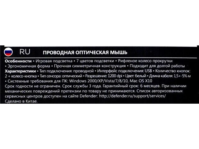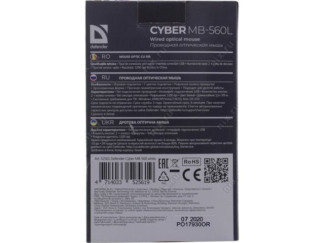 Проводная Мышь Defender Сyber MB-560L (USB 2.0, 3btn, 1200 dpi)