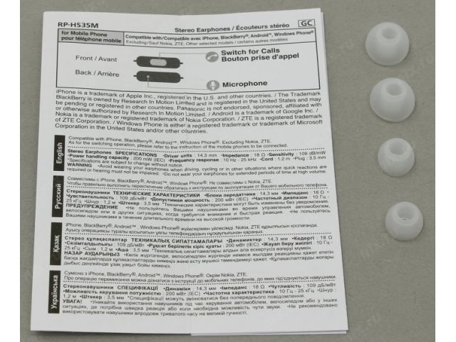 Наушники с микрофоном Panasonic RP-HS35MGC-W  White (шнур 1.2м)