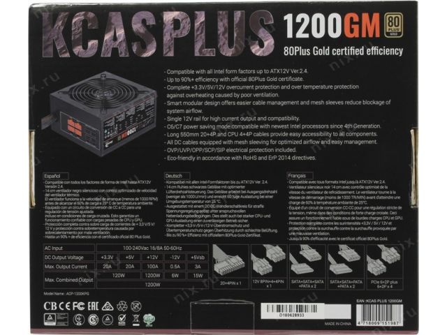 | КПД | 86% Сертифицирован на стандарт 80 PLUS Gold |