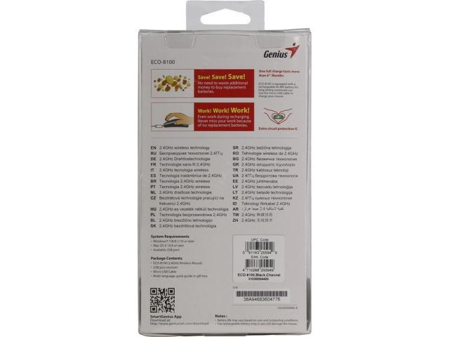 Genius Wireless Mouse ECO-8100 Black  (RTL) USB 3btn+Roll (31030004400/31030010410)