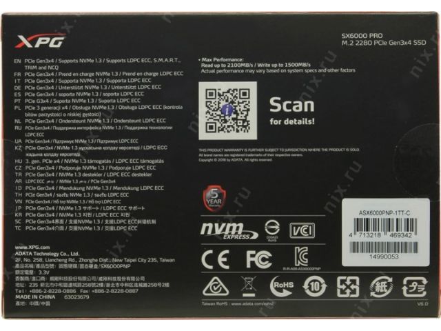 SSD 1 Tb M.2 2280 M ADATA XPG SX6000 Pro  ASX6000PNP-1TT-C 3D TLC