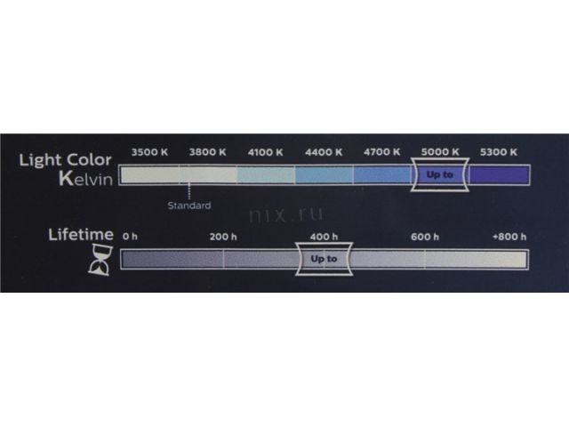Галогеновые лампы Philips серии Diamond Vision по заявлению производителя излучают белый свет с цветовой температурой 5000K. Отличаются стильным исполнением колбы за счет нанесенного голубого покрытия