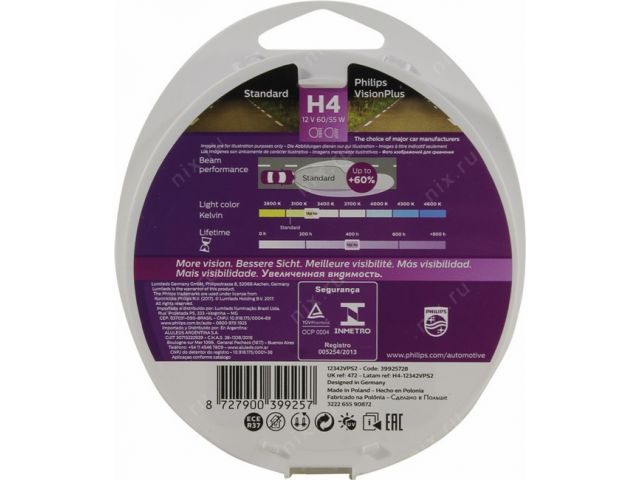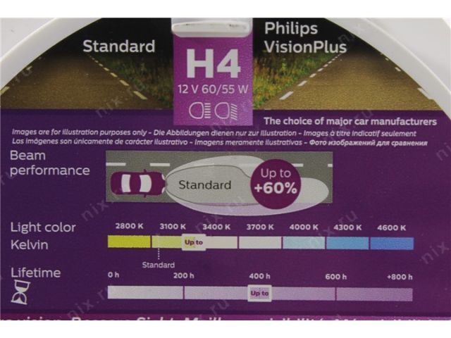 Галогеновые лампы Philips серии VisionPlus по заявлению производителя предлагают на 60% лучшую видимость, в сравнении со стандартными галогеновыми лампами.