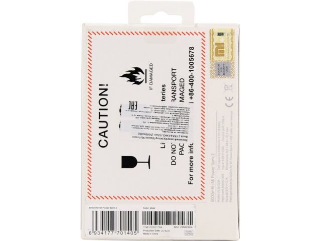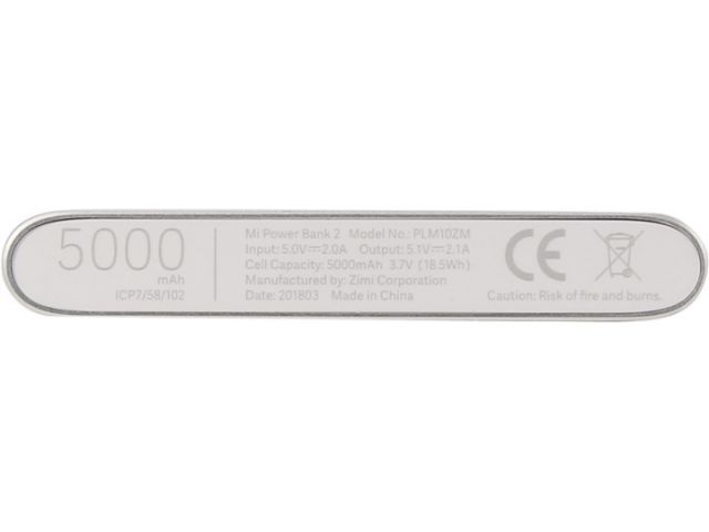 Внешний аккумулятор Xiaomi VXN4236GL Silver PLM10ZM Mi Power Bank 2 5000 (USB 2.1A, 5000mAh, Li-Pol)