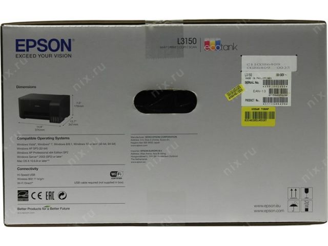 Epson L3150 (A4, струйное МФУ, 10стр/мин, 5760x1440dpi, 4краски, USB2.0, WiFi)