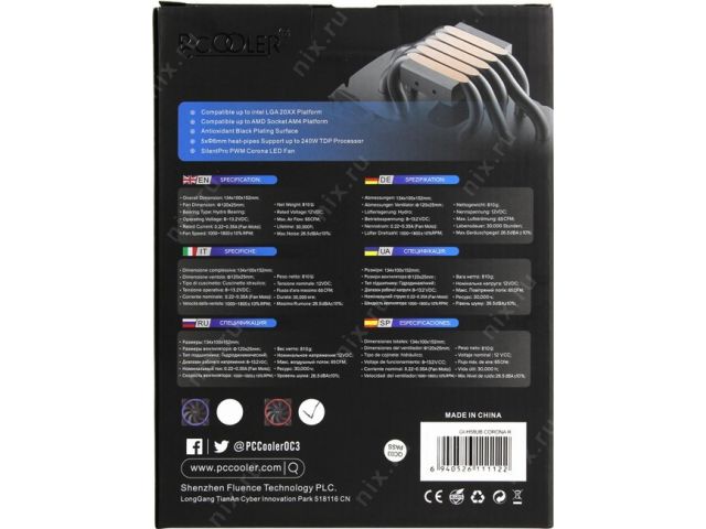 PCCooler GI-H58UB CORONA R (4пин, 775/1155/1366/2011/AM4-FM2, 26.5дБ, 1000-1800 об/мин, Al+тепл.трубки)