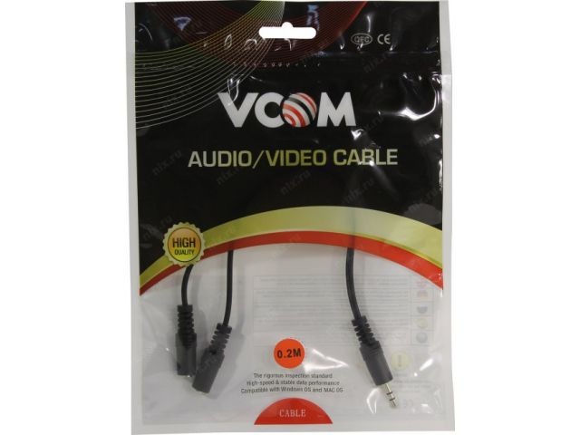 VCOM CV203 Кабель-разветвитель Jack3.5-M --  2xJack3.5-F