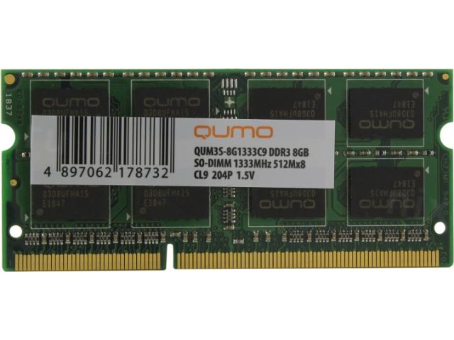 QUMO QUM3S-8G1333C(L)9 DDR3 SODIMM 8Gb PC3-10600  CL9 (for NoteBook)