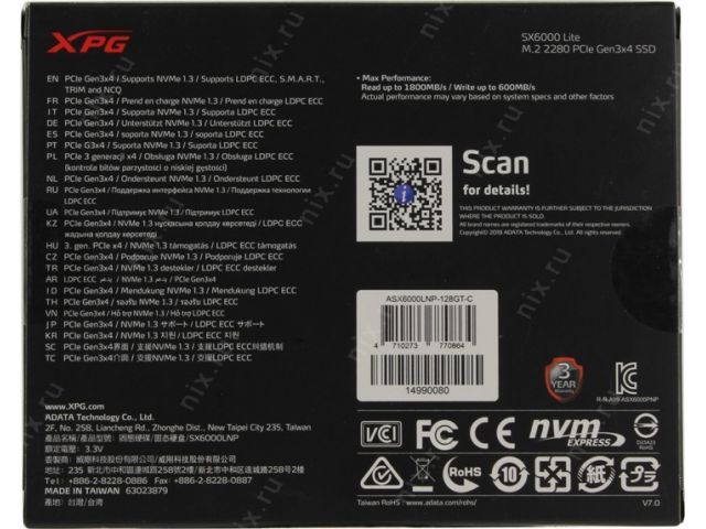 SSD 128 Gb M.2 2280 M ADATA XPG SX6000 Lite ASX6000LNP-128GT-C 3D TLC