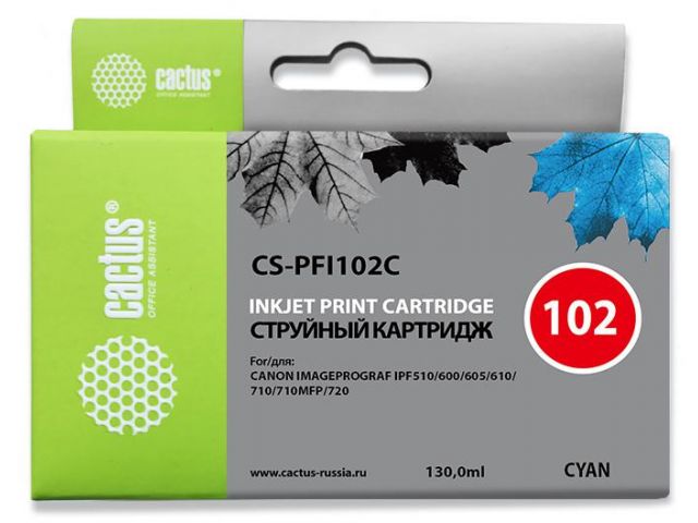 • Картридж Cactus CS-PFI102C Cyan для Canon iPF500/600/605/610/710/720