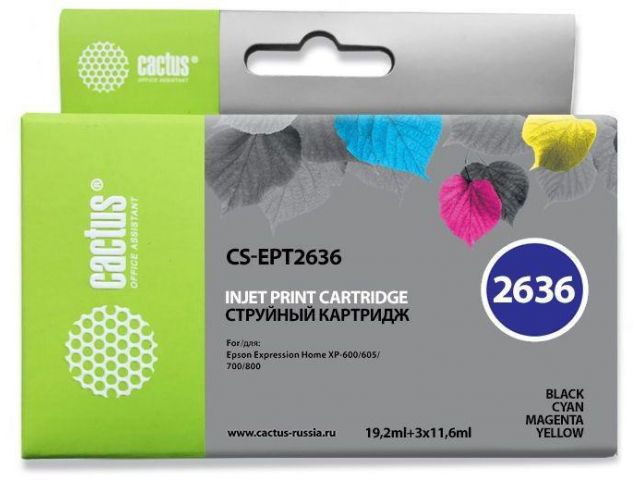 Картридж Cactus CS-EPT2636 BK/C/Y/M для Epson XP-600/605/700/800