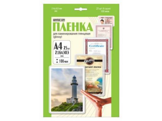 • Office Kit LPA4100 Пакеты для ламинирования (A4, 100мкм, Gloss, уп. 25 шт)
