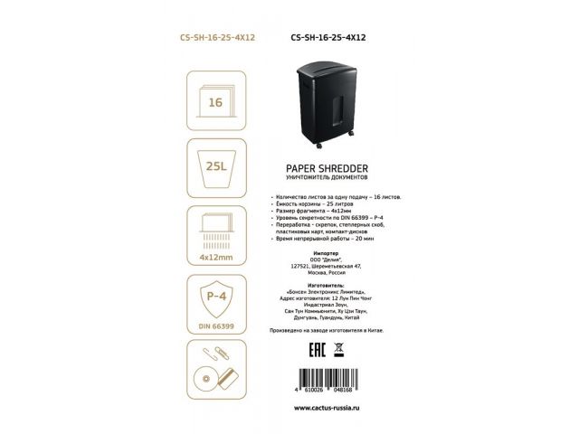 Shredder Cactus CS-SH-16-25-4X12  (4x12мм, 16 листов)