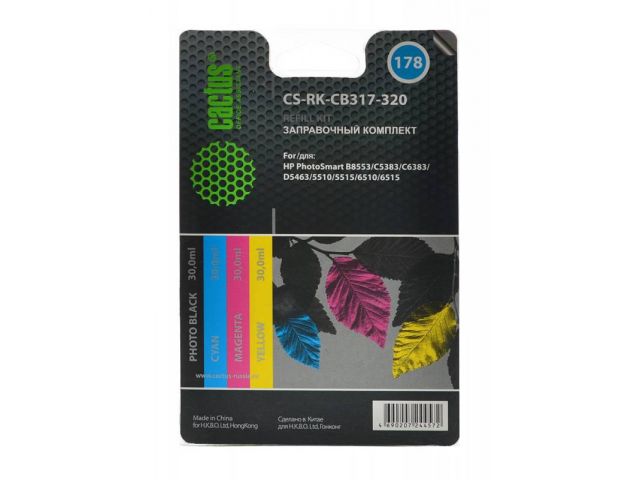 Заправочный комплект Cactus CS-RK-CB317-320 C/Y/M/PB (4x30мл) для HP C5383/6383/B8553/D5463/5510/5515/6510/6515