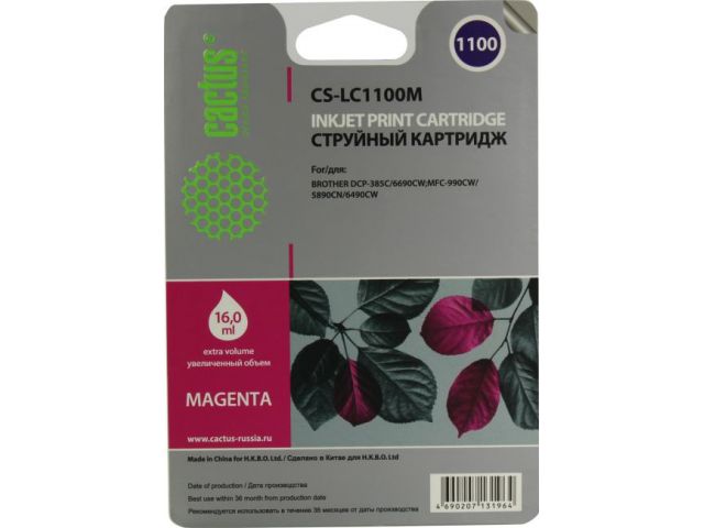 Картридж Cactus CS-LC1100M Magenta для Brother DCP-385c/6690cw/MFC-990/5890/6490