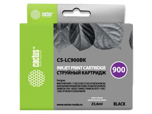 Картридж Cactus CS-LC900BK Black для Brother MFC-110C/215C/410CN/620CN, FAX-1835C/1940CN, DCP-110C/120C/310CN