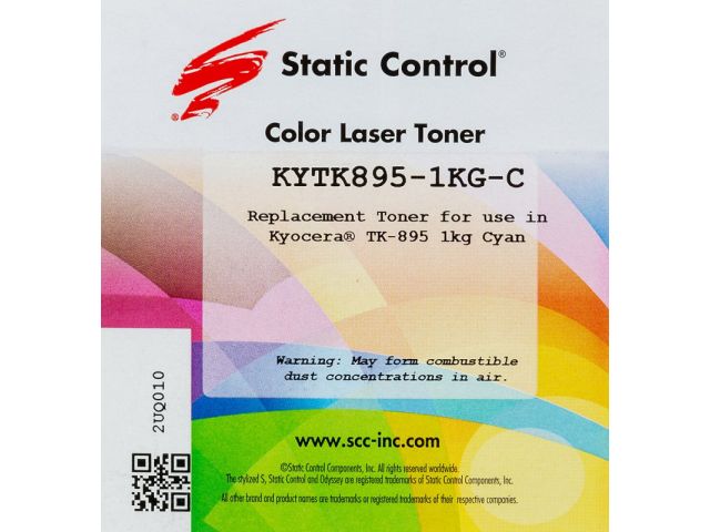 • Тонер Static Control KYTK895-1KG-C голубой флакон 1000гр. для принтера Kyocera Mita FS C8020/C8025/C8520