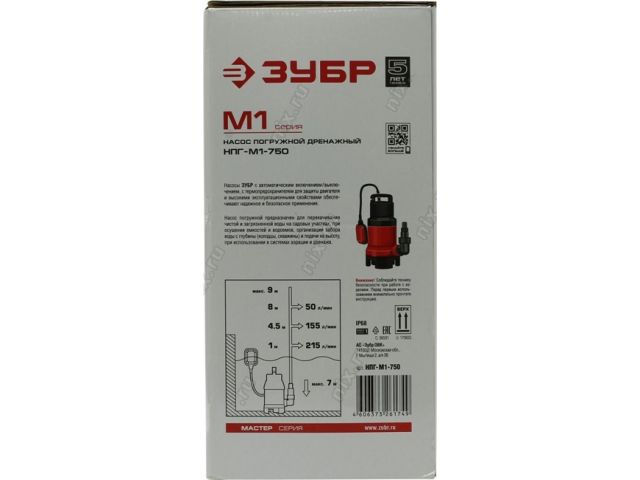 | Безопасность | Автоматическое включение и выключение (поплавковый выключатель), термопредохранитель для защиты двигателя. |