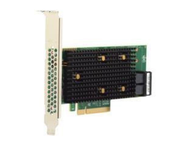 | NVMe/SAS/SATA HBA адаптер, имеющий 2 разъема SFF-8643, поддерживающий подключение до 24 NVMe накопителей или до 1024 SAS устройств с помощью SAS экспандеров |