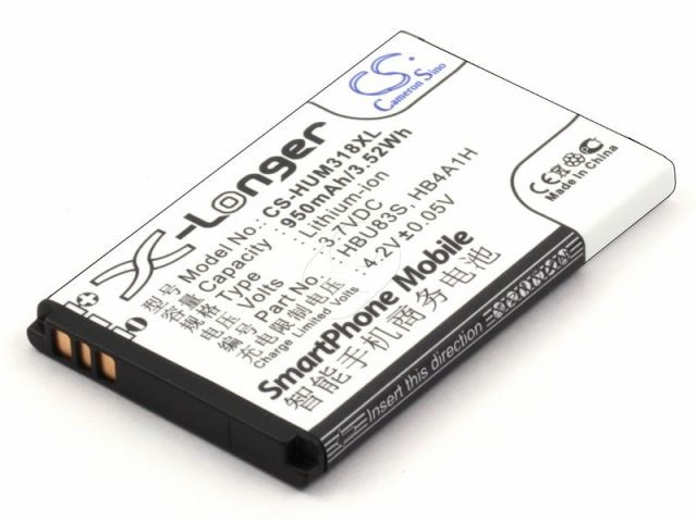 Аккумулятор (батарея) HB4A1H, HBU83S для сотового телефона Huawei M318, M635, Pinnacle 2, U121, U2800, U2801, U2801-34, V716, МТС 835, Мегафон U1270. Совместимые модели: CS-HUM318XL HB4A1H HBU83S
