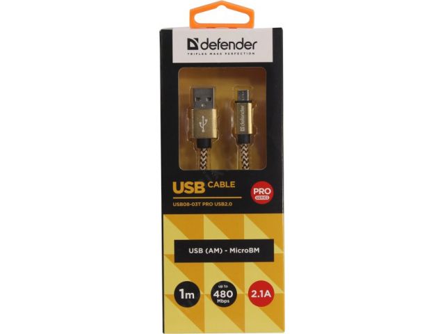 Defender 87800 Кабель USB 2.0 AM-- micro-B 1м, Gold